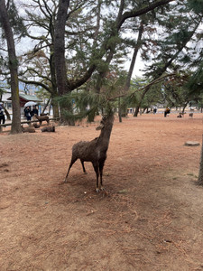 The first exciting stop of the day was at Nara Park, just outside of Osaka. Walking up to the park gates, I was greeted by deer roaming the streets. I simply had to feed them, so I bought a pack of deer cookies and went on my merry way. As soon at the deer saw I had food in my hands, I was immediately surrounded. I would crack the cookie into small pieces and slowly hand them out to the deer in my general vicinity. The trick was to bow to the deer, and then they would bow back to you while taking the food out of your hand. Walking further into the park, I made acquaintances with a deer I fondly referred to as Timmy. Timmy was a big boy driven solely by food. I gave him a few pieces initially, and then turned to feed other deer. Timmy apparently did not like this, so he bit my jacket sleeve and yanked me down to his height. I did not appreciate this. I decided to find other more friendly deer that would not grab at my clothing. As I was bent over feeding a smaller deer, Timmy circled back around and head butted my backside. Had I not had my feet firmly planted, I would have gone face first into the mud. I quickly realized Timmy would not ever leave me alone, so I resorted to chastising him whenever he would do something inappropriate or rude. I did not plan on becoming a mother in Japan, yet there I was, standing in a park disciplining my deer child. By the time I left the park, my jacket was filthy and I was sporting a killer bruise on my knee thanks to Timmy.
