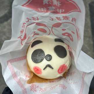 When walking around, I stumbled upon a bun vendor selling all different kinds of buns decorated to look like pandas. I bought a vegetable pun that was green, a red bean bun that had blush, and a chocolate bun that was the traditional black and white. The vegetable was a 4/10; it was quite salty and did not have much depth. The green dough was a fun touch though. The red bean was a solid 7.5/10. The dough was soft and the filling was not overly sweet. The chocolate bun was saved for last. I gave it a 6/10. It tasted almost like fake chocolate and was not as creamy as I would have liked. Overall, I enjoyed trying the different buns.