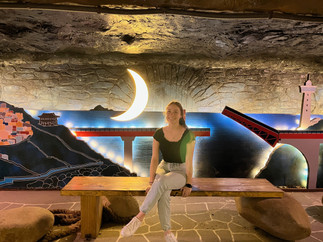 We found ourselves going down one of the side streets and stumbled upon a beautiful staircase. Each step held dozens of mosaic houses similar to the look of the colorful houses within the village. A small photo shoot was held before we continued on our merry way. The sun was majorly out at this point, and I may or may not have (definitely did) get sunburned on my shoulders; the woes of being a pale girl. One last impromptu photo shoot in front of a sequin background, and we set off in search for a little pick-me-up. I decided on a delicious soft serve and Tom went with a rainbow slushie. I also was able to finally buy the pair of paper shoes I had been looking at way back in September when I first came. I had been thinking about them for months and months!